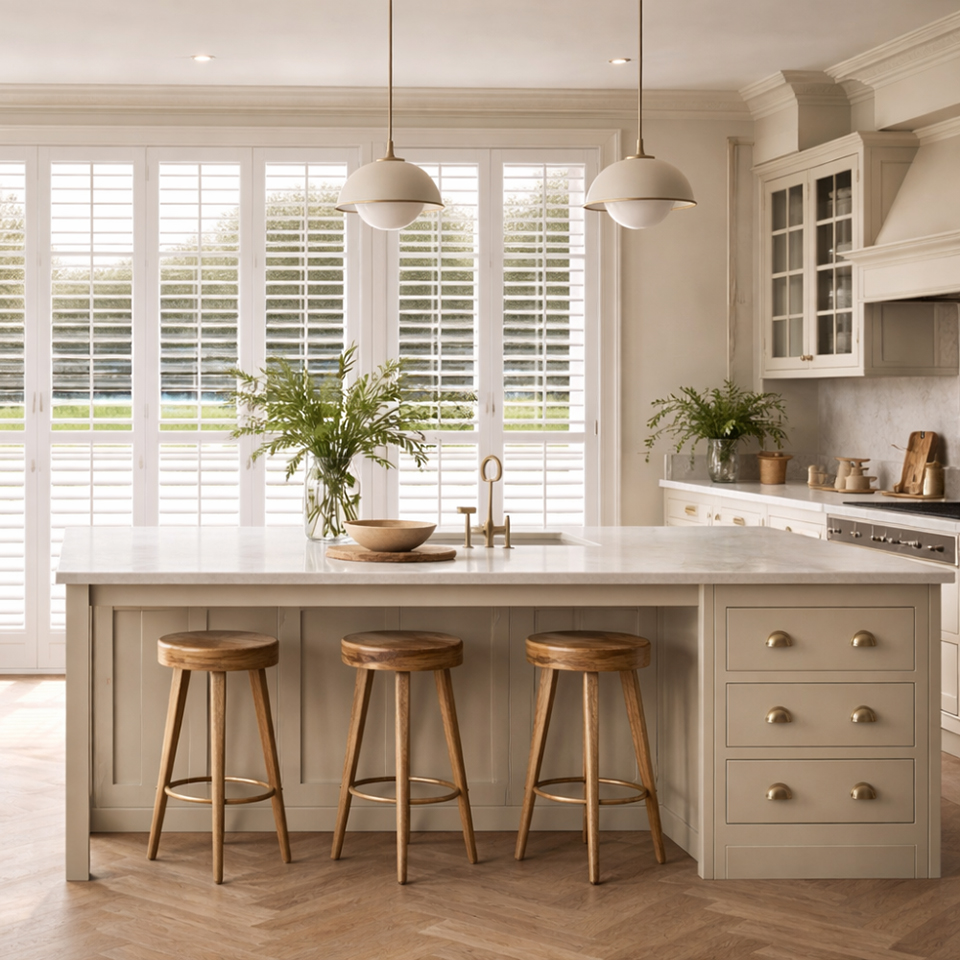 Ideal for creating a seamless indoor–outdoor flow, tracked shutters are as practical as they are elegant, providing shade, insulation, and timeless appeal in one versatile design.